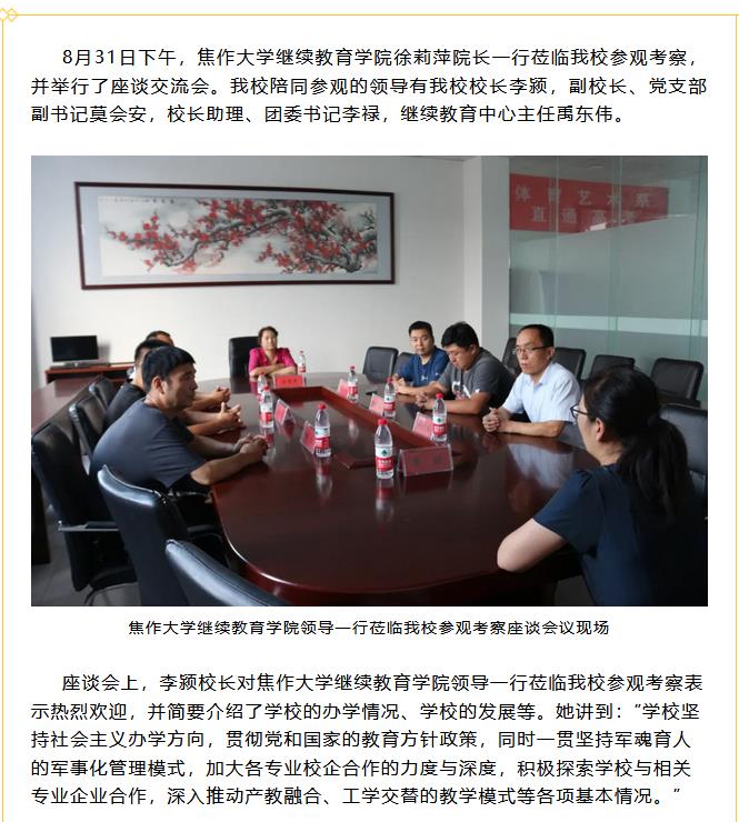 欢迎焦作大学继续教育学院领导一行莅临我校参观考察 ...
