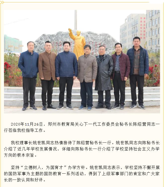 郑州市教育局关工委秘书长陈绍营一行莅临我校指导工作