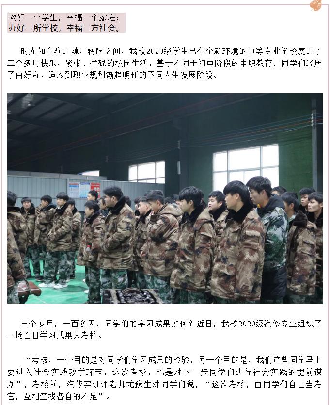 我校2020级汽修专业学生举行百日练兵成果考核