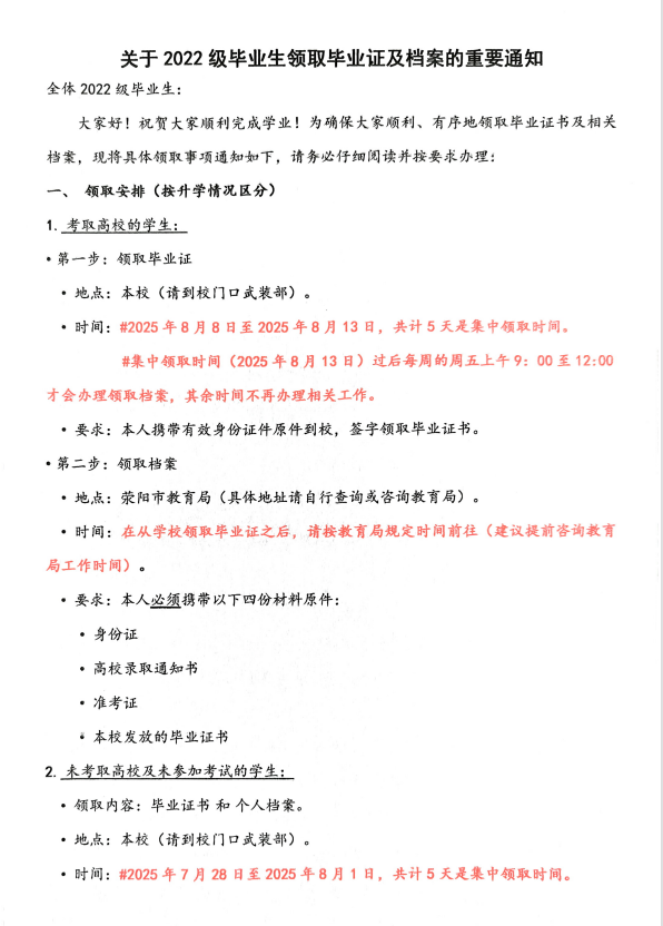 关于2022级毕业生领取毕业证及档案的重要通知